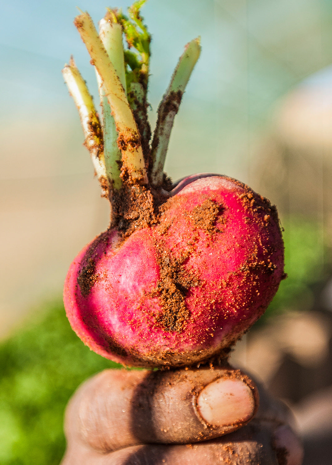 Improved selection of Boltardy specially develeoped by organic seed breeders in Germany. Has performed extremely well for us for several seasons. Good resistance to bolting so sow from March in mild areas. Fine tasting globe shaped roots.