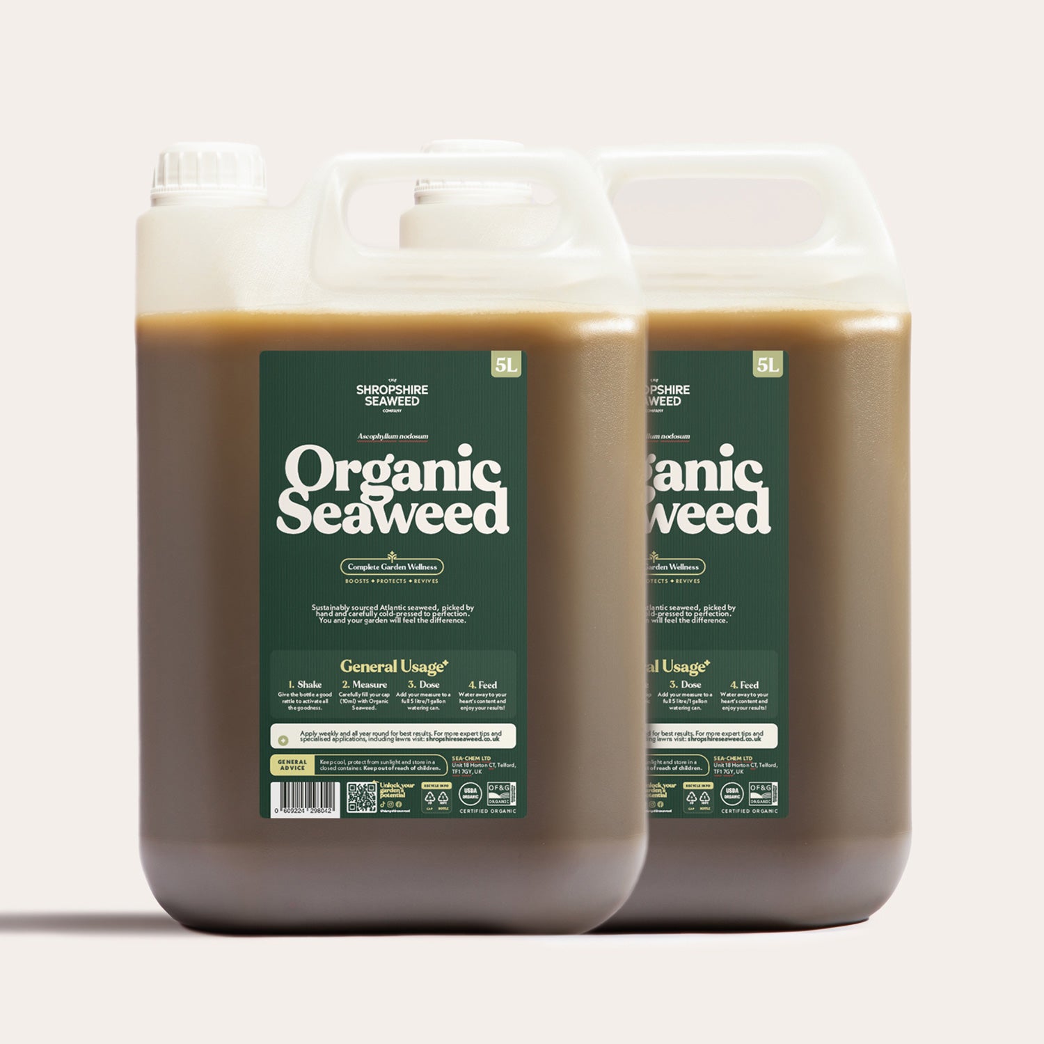 Soak your seeds in a weak concentration of The Shropshire Seaweed Company Organic Fertilizerand water (0.1%) for up to 12 hours before sowing. This will boost their germination by up to 80%. When transplanting seedings, dip their roots in a stronger seaweed extract solution (0.2%) to help their roots adjust to their new pot. Once the seedlings are three weeks old, they are ready for their first foliar feed. Again, use the 0.2% mix and mist them all over. Using seaweed at these three crucial stages lays the foundation for healthy and strong plants in the long-term.